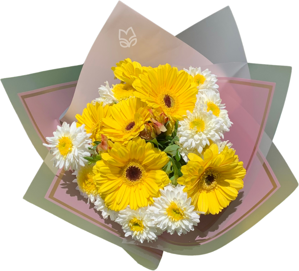 Este 🌸 encantador ramo de 6 gerberas simboliza la fuerza, la unión y el compromiso de seguir juntos en cualquier camino. Cada gerbera, con su color amarillo vibrante 🌞, irradia alegría y esperanza, mientras que el verde fresco de las hojas 🌿 refuerza la vitalidad y la conexión con la naturaleza. Envuelto con un papel lila elegante 🎀, este arreglo combina simplicidad y belleza, enviando un mensaje poderoso de amor eterno ❤️ y lealtad compartida. Ideal para expresar un vínculo duradero lleno de luz y positivismo. 🌼